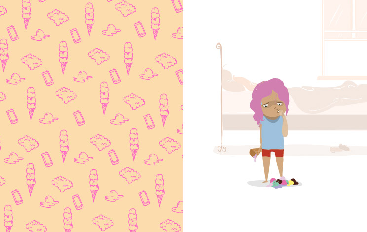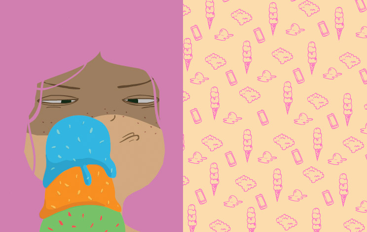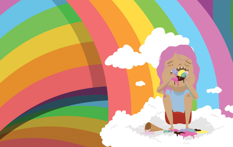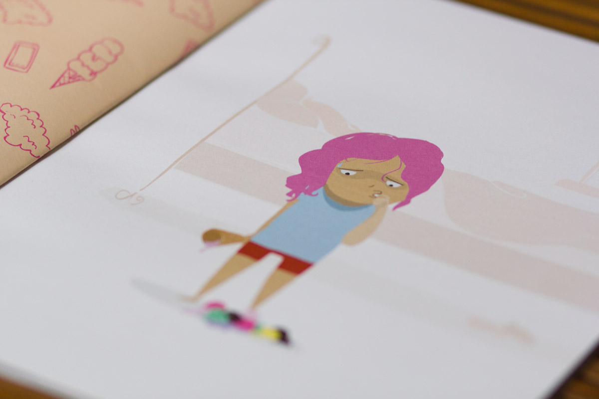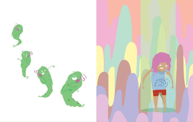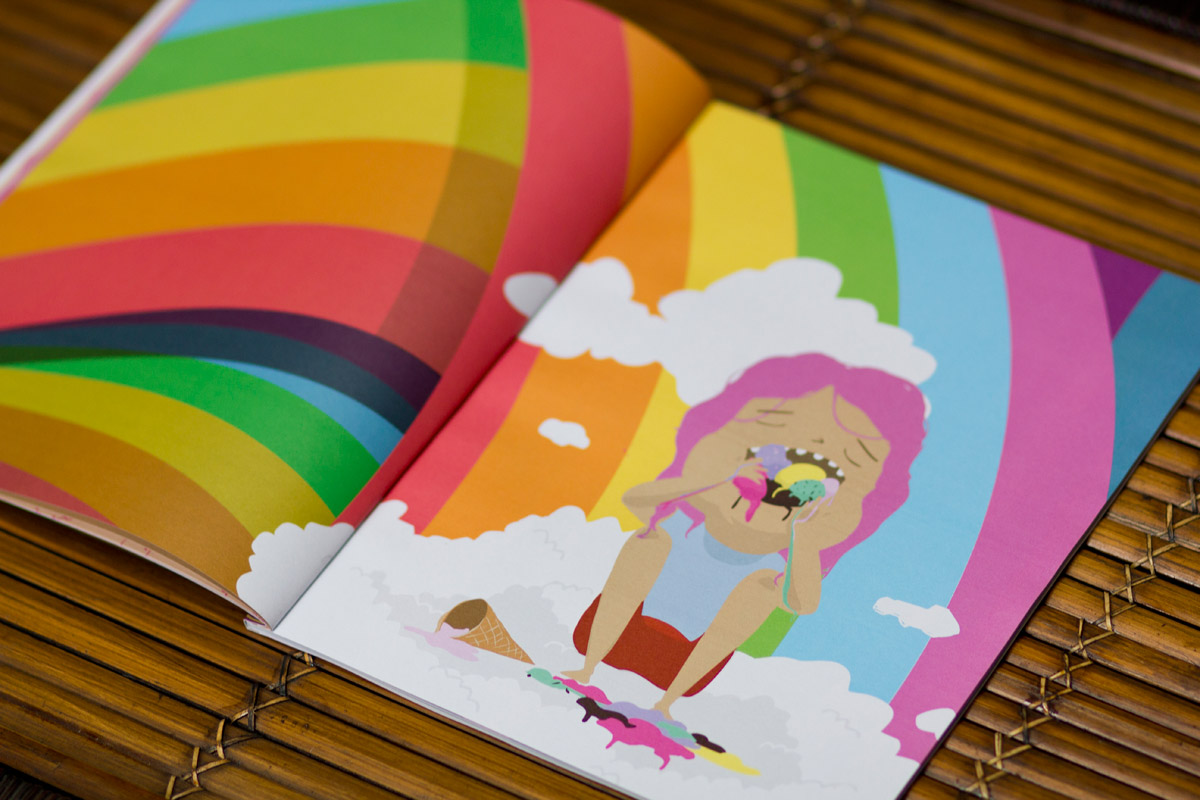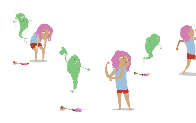 A dropped ice cream cone presents a young girl with a delicious dilemma. Which, of course, she can't resist and gobbles right up! Face and belly stuffed with tasty treats, she's suddenly met with a series of unexpected events resulting from that cold concoction. Find out what in this wordless picture book about giving in to whims, not-so-pleasant surprises, and happy accidents.